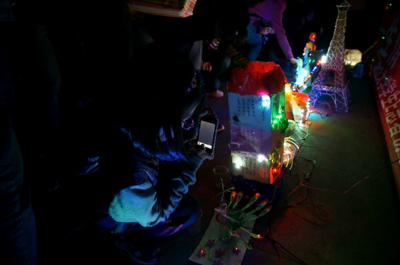 天已经完全黑了,彩灯的光芒为夜幕中的文化广场增添了光彩。这样的热闹一直持续到了7点,当路人散去,彩灯创意大赛暨感恩灯会展示活动也在璀璨灯光中圆满结束了。E志者们开始整理场地,将彩灯搬离现场。
