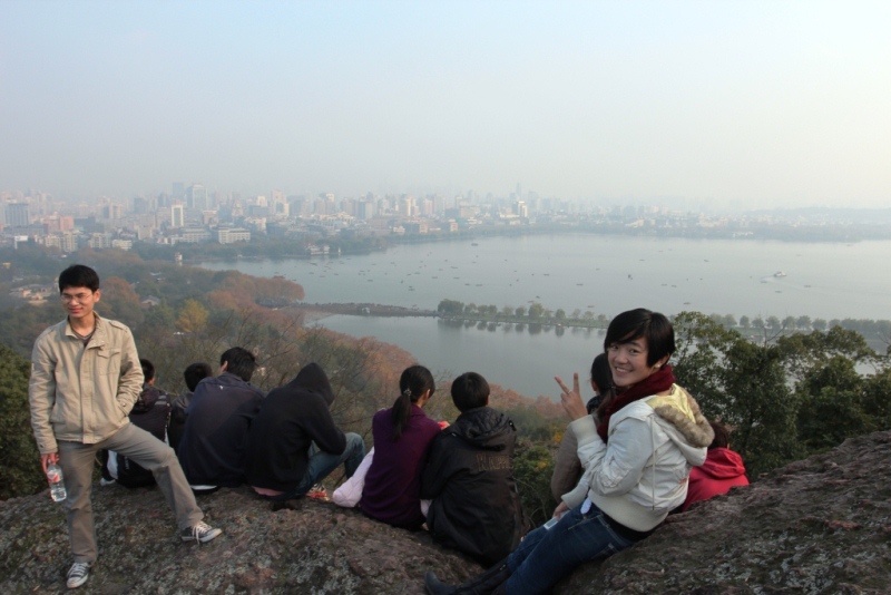当大家立足于宝石山之巅,俯瞰杭州全景,整个西湖尽收眼底,渔船如孤叶一般浮于湖面,游弋荡漾,自豪之情油然而生。