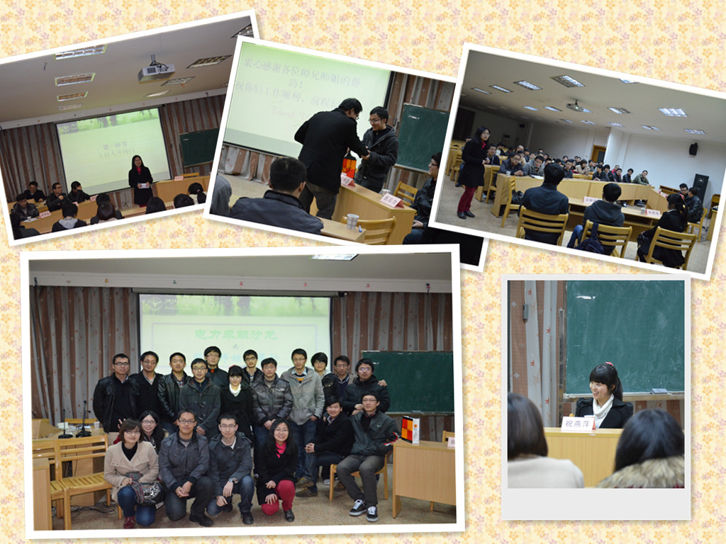 草长莺飞,春色渐浓,和煦的春风一扫多日的阴霾,为雨水洗刷过的杭城带来了丝丝暖意。在风云变幻莫测的求职路上,群雄逐鹿谁主沉浮?在面对笔试时,我们应该如何准备才能做到下笔有神,在面对面试时,我们应该怎样应对才能与考官对答如流,在面对众多工作机会时,我们又该怎样抉择才更有利于发挥自己的优势,是国企还是外企,是供电局还是设计院,对还未踏入职场的我们来说都还是一个未知数。于是乎,在这个春光明媚的日子里,我们电力系统2010级硕士生党支部于2012年3月13日在电机工程楼怡电园,举行了以优秀毕业生求职访谈为主题的“电力求职沙龙”活动,隆重邀请了电力系统09级硕士班和电力经济09级硕士班6位优秀的师兄师姐,为即将面对求职环节的我们答疑解惑,传授经验。