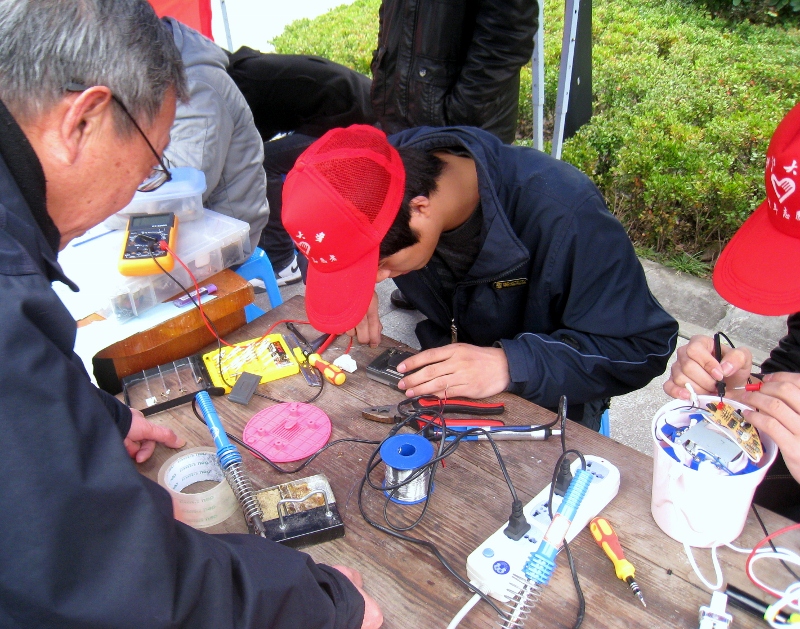 同学们工作热情高涨,赢得了居民们的大力支持。一些技术部的成员,在帐篷、椅子还未完全到位的时候,就开始站着为居民维修电器了。本次活动持续到下午14:00,大部分送修电器都成功修好。
