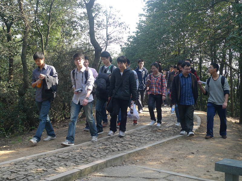 2012年3月25日早上8点,支部的团员们和电信0802党支部的同学们早早地在浙江大学玉泉校区毛主席像下集合。签到后,大家一起往教七后的老和山上走去。我们的路线是:玉泉校区出发——登老和山——灵隐下——上天竺,行程大约为“毅行”的一半。沿途的山路很陡也很长,同学们的头上都很快沁出了汗珠,但大家都没有畏惧,依然有说有笑地向前方走去。累了便停下脚步歇一歇,大家不时互道一声“加油”。来到山顶处向南望去,是杭州最具盛名的景点——美丽的西湖,向北远眺,是培养我们、看着我们一路成长的母校——浙大紫金港校区,大家都对山顶的美景发出了内心的感慨,同时,我们将自己的礼物送给了学长学姐。经过3个半小时的登山和步行,我们终于到达了我们的终点——上天竺。用餐过后,带着倦意的同学们一同乘坐公交车安全回到了学校。