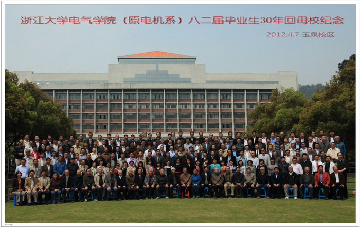 春风吹绿江南岸,同学情怀一样心。2012年4月7日,风和日丽,浙江大学电气工程学院(原电机系)82届三个专业(工自、电机、发电)156位分布在世界各地的老同学,参加了在母校玉泉校区邵逸夫科学馆举行的纪念毕业30周年暨母校115周年华诞庆典活动。