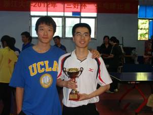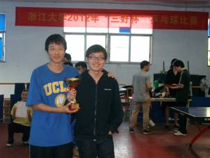 浙江大学2012年“三好杯”乒乓球团体比赛于4月21至22日在玉泉新桥门乒乓球馆举行,共有21支队伍参加角逐,采取男女单打5局3胜团体赛制。