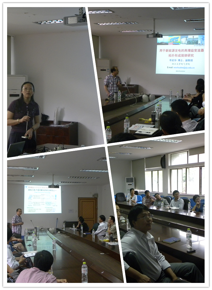 为在电气工程学院青年教师中传承和发扬“求是创新”校风,加强交流合作,活跃学术气氛,搭建相互激励、共同发展的平台,2012年5月23日下午,电气学院青年教师联谊会在电机工程楼201会议室开展了以“学术创新”为主题的第一期青年教师学术沙龙活动。本次报告会中,我院青年教师李武华副教授做了题目为“学术创新之我见”的主题报告,包括学院党委副书记、工会主席王玉芬老师、党委副书记毕建权老师、学院青年教师联谊会会长江全元老师在内的青年教师及学生参加了此次活动。