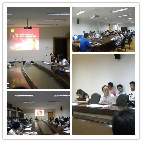 2012年6月6日晚电气学院本科生党总支在电机楼201会议室召开了第二批“五好”党支部验收会议。学院党委副书记、本科生党总支书记毕建权老师、本科生党总支副书记、团委书记陈敏老师及两位兼职辅导员出席了会议。