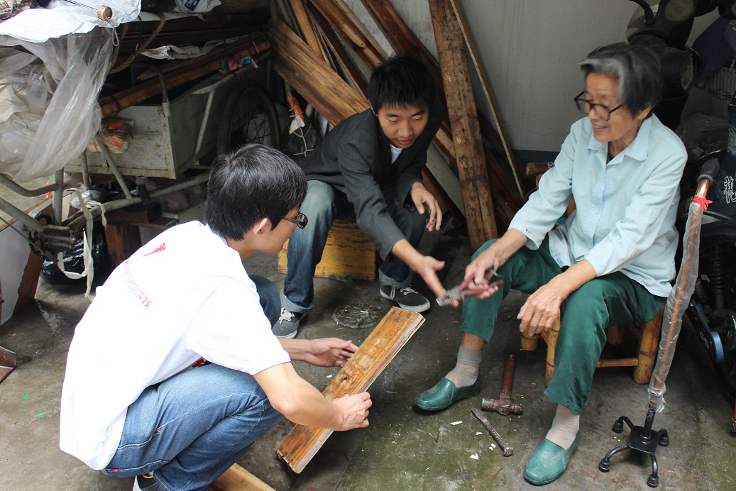 在今天的志愿服务中,有一位老人吸引了全队同学的目光,78岁的她居住在一个不足3平米的“房子”内,狭小的空间只为她提供一个并不宽裕的睡觉位置,由于空间限制,老人捡来的很多物品都放在了房子外的角落里,我们在老人指挥下搬上搬下,做好防潮工作。同时,老人有一些门板和木板需要帮忙处理,我们一展工科男生本色,将自己在金工实习时学到的操作技能发挥的淋漓尽致。