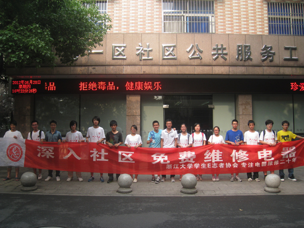 2012年6月28日早,阴雨绵绵。浙江大学学生E志者协会暑期社会实践团19名队员从紫金港奔赴翠苑一区社区,拉开了为期三天的现场义务电器维修活动的序幕。