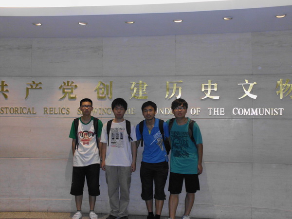 2012年7月9日星期一,浙江大学电气学院电子信息工程1002班团支部社会实践小组来到了中共一大、二大会址进行参观。由于出发时是上班高峰期,交通十分拥挤,加上处于闹市中心,要找到中共一大、二大会址也费了一番周折。花了大约一个小时,我们终于来到了中共一大的门口。从外观上看,会址与周围林立的高层建筑形成了鲜明的对比。都市早晨的气息喧闹而嘈杂,而周围环绕着树木的中共一大会址却似乎与这城市的喧闹并无瓜葛一般,仍然保持着庄严而静谧的氛围。古朴的外貌向人们宣示着厚重的历史积淀,而修缮之后又焕发出新的生机,似乎正在默默地注视着这个城市的呼吸一般。