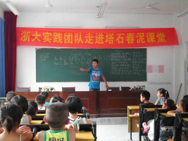 在开课以前,浙大电气学院赴龙泉塔石支教分队成员们就与塔石乡政府共同决定以“感恩”为今年春泥课堂的主题,因此支教队员们就以感恩展开了今天的课程。