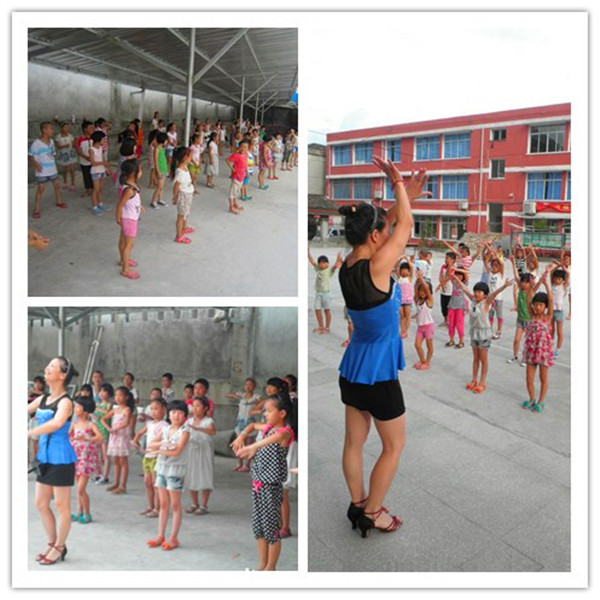首先由塔石乡中心的小学的季老师带领大家来到操场排开队形,随着《最炫民族风》的音乐响起,同学们跟随季老师的动作一起舞动起来。浙江大学电气工程学院暑期社会实践团队支教分队的大同学们也跟着小朋友一起跳起来,《最炫民族风》的鼓点瞬间洋溢了整个校园,同学们都边唱边跳,喜笑颜开。之后老师又教给大家一段舞蹈《快乐崇拜》,这次简单的动作和动感的节奏,引得周边的路人也纷纷加入进来。
