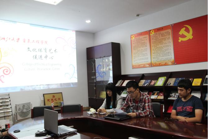 本次换届大会由09级中心主任佟世天主持。首先佟世天对2011-2012学年年度工作进行了总结。他首先回顾了过去一年中文化体育艺术促进中心所走过的充实而精彩的历程,用视频向大家展示了中心从建立以来走过的路和取得的成绩。详细介绍了中心在浙江大学电气工程节、电气学院毕业晚会、电气学院研究生合唱大赛、建党90周年校红歌大赛、三好杯篮球赛、足球赛、羽毛球赛、网球赛、游泳比赛等活动中取得的成绩和工作经验,并强调了中心在校园文化体育艺术、锻炼学生能力、培养科学素质方面配合学院工作的重要作用。会议在肯定过去一年中心成员所取得的成绩的同时,也寄予希望并提出切实的措施促使下一年的工作更上一层楼。