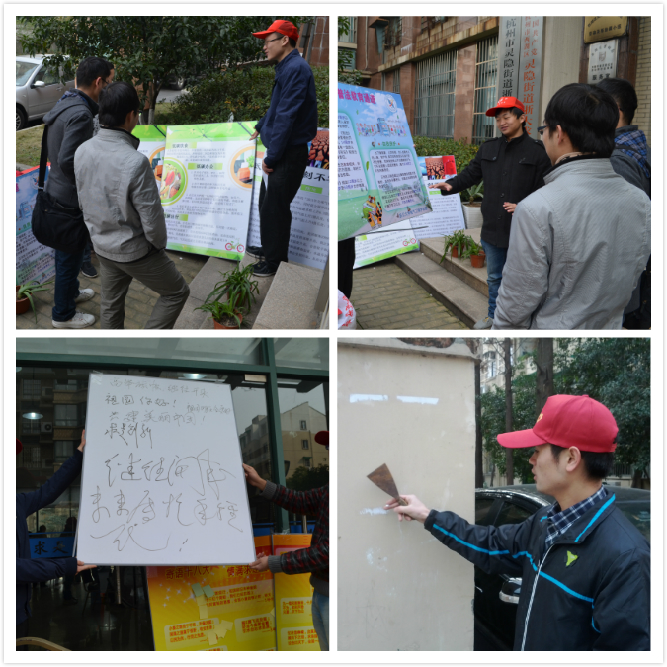 在做好所有准备之后,一些志愿者拿着事先准备好的低碳环保宣传手册,分发给路过的居民,并热情地领着他们来到展板之前,向他们耐心讲解低碳生活。另一些志愿者将居民带到十八大展板前面,让他们选出自己最喜欢的十八大寄语,并写上自己对党和浙大学子的祝福,其中曾任浙江大学党委副书记、党委宣传部部长,现年81岁的郑爷爷题写了“求实创新”四个大字,鼓励年青一代的浙大学子求真务实、不断创新,为社会贡献自己的力量。还有一位与文字工作打了一辈子交道,曾为李鹏总理写过报告的老爷爷则书写了“继往开来,未来属于年青一代”,期盼浙大学子能开拓进取,做好新世纪的接班人。