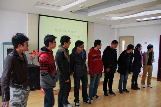 为增进新成立专业班级的凝聚力,促进同学们的友谊,让同学们尽快融入电气1102班的大家庭,2012年12月8号下午,电气工程学院电气工程及其自动化1102班在小剧场311活动室举行了破冰活动。