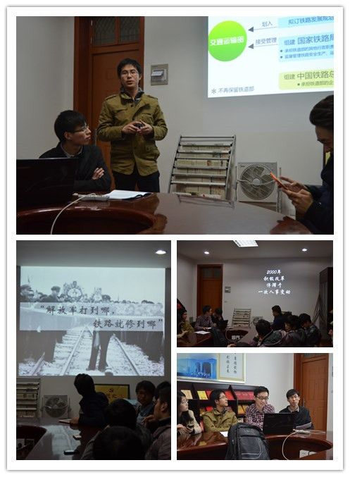 例会开始,马硕尧同学为大家介绍了铁道部改革的背景,让大家先对铁道部改革的过程有一个更全面的了解。马硕尧同学以铁道部过去的三次改革为例,分析了铁道部改革过程中曾经出现的问题和一些主要矛盾,为大家的讨论奠定了基础。