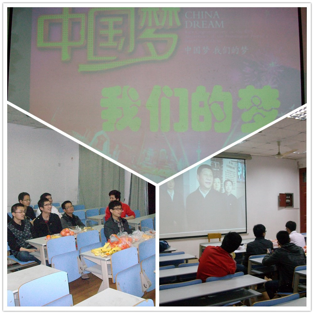 首先,我们集体观看了习近平总书记关于“中国梦”的讲话视频,从习总书记的话语中我们能感受到实现“中国梦”光荣而艰巨,亦能感受到习总书记对实现“中国梦”充满了信心。