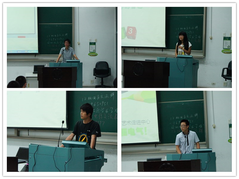接着电气学院团委、电气学院学生会、浙江大学学生E志者协会、电气学院文体艺术促进中心依次对各自组织的部门架构和活动理念作了介绍。不同的介绍图文并茂,声色动情,各组织五彩纷呈的工作与活动也展现了电气学子们学业之外的另一面精彩。