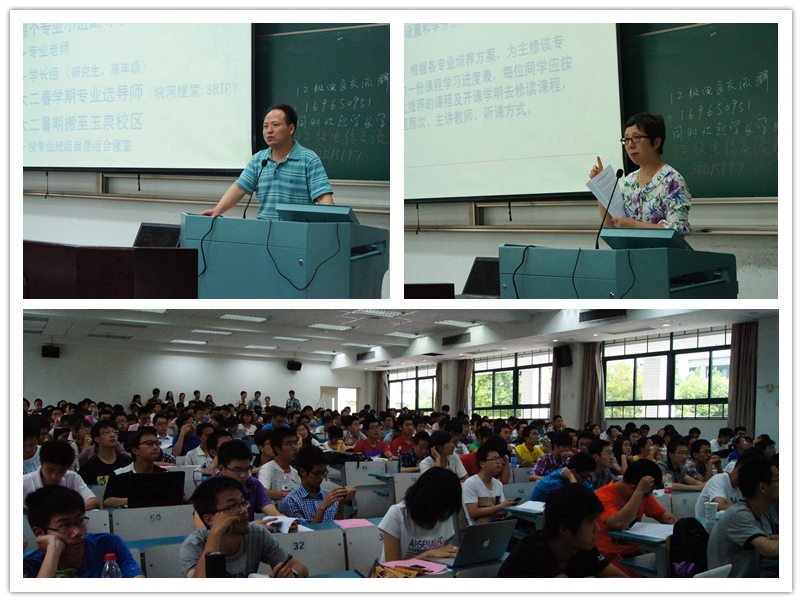 学院党委副书记毕建权老师在大会开始首先对会议内容进行了简要介绍,并对确认后的分班、选导师等与学生切实相关的工作安排进行了讲解。随后,本科教学科杨敏虹老师对《电气工程学院2012级本科生学业指导必读手册》作了详尽细致的解释,并针对手册中主要纲要和重点部分进行了相关政策的讲解和特别的提醒。杨老师在讲话中也鼓励同学们参与到电气学院的各项活动与计划之中,以不断提升自我学业水平和实践能力为目标进行今后的学习生活。