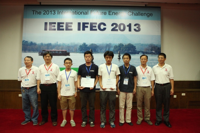 7月28日至30日,由浙江大学承办的2013年国际未来能源挑战赛 (International Future Energy Challenge,IFEC2013)总决赛在浙江大学玉泉校区邵科馆隆重举行。共有八支队伍参加了本次总决赛,包括浙江大学、清华大学、中国台湾地区的成功大学、印度的国立技术研究所,孟加拉工程与技术大学等,经过激励的角逐,浙江大学电气工程学院本科生王夏炜同学、唐圣鹏同学、李钊同学、马越同学以及研究生赵思阳同学组成的队伍在比赛中以总成绩第一名,获得IFEC2013总决赛的一等奖,并获得一万美元的奖金,同时受邀参加2013年9月在美国科罗拉多州丹佛市举行的国际能源变换会议(ECCE2013)展示其设计样机。指导老师为吴新科副教授。