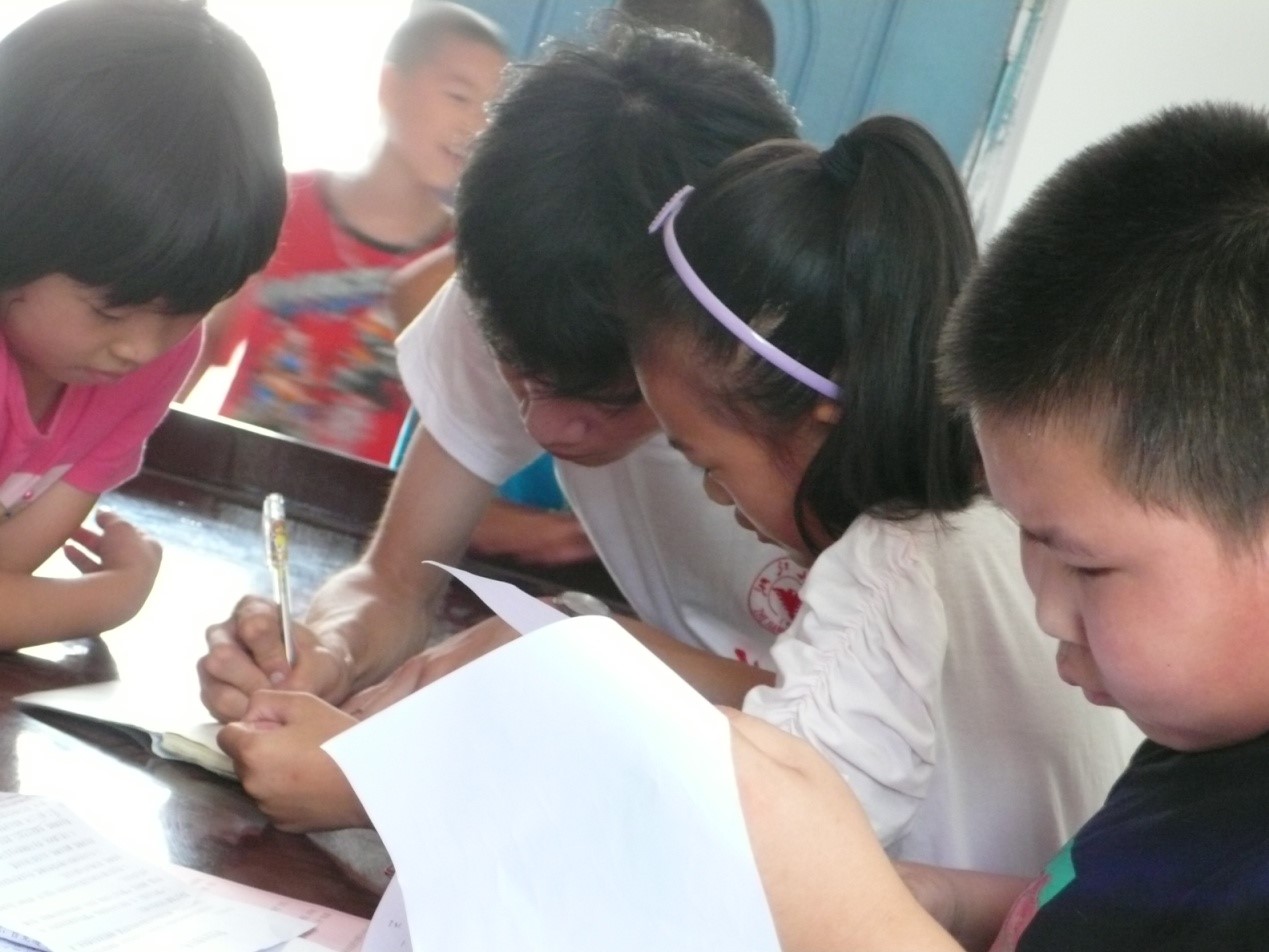 我们利用课间的时间开展了暑期作业辅导,在解决孩子们的疑难问题时,也很快跟他们达成了一片,有几个大胆的五年级女生甚至主动向我们询问QQ号。