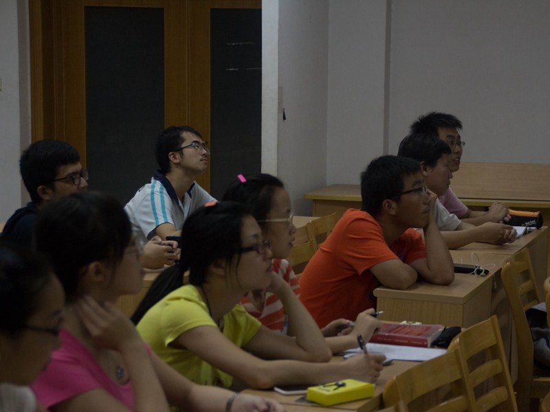 讲座以一个热身操开始。同学们在梁老师的带领下简单地进行了对手指、手掌、手臂和肩关节的活动,现场的气氛也逐渐地活跃了起来。接着,梁老师向大家介绍自己,并分享自己的求学、求职和发展的经历,用自己曲折复杂的经历来鼓励我们,尽早确立自己关于学业和职业的梦想。