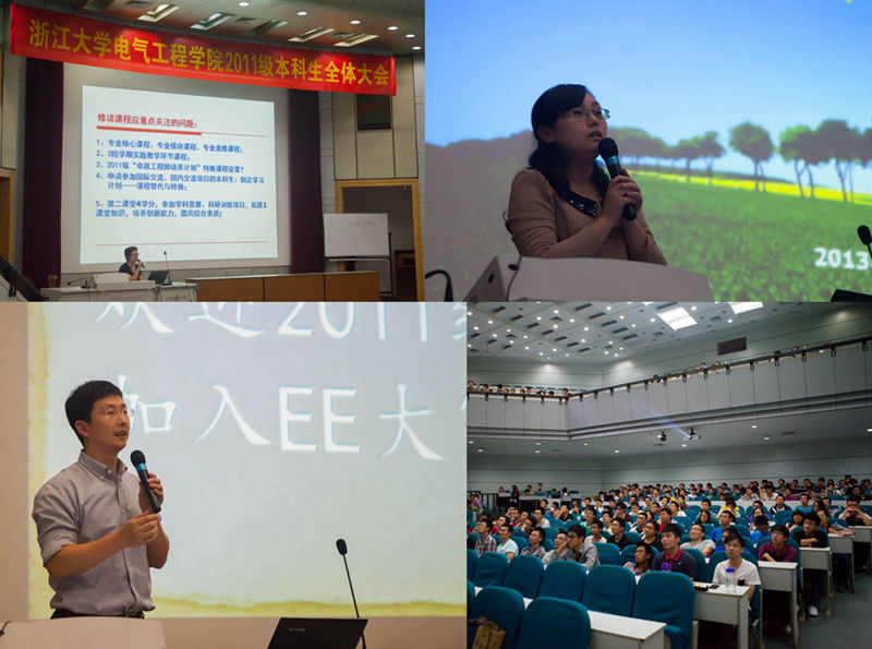团委书记陈敏老师则重点介绍了学院团委的相关工作。陈老师首先介绍了电气学生会、E志者协会、文体艺术促进中心等学院团委指导的学生组织的工作构架,同时还列举了电气工程节、创意主题团日活动、大学生社会实践、青年志愿者工作等具有浓厚学院特色、影响深远的学院团学品牌工作,并提醒同学们团委近期将会有一个小型纳新活动,鼓励在座同学积极参与到学生组织,参与到品牌活动当中,不断锻炼和提高自身的综合素质。最后,陈老师还根据多年团委工作的经验总结出了电气学院团学工作的三个特点——严谨、务实、创新,只有细致严谨、踏踏实实地对待工作,才能有所创新、有所提高,才能真正做好团学工作。