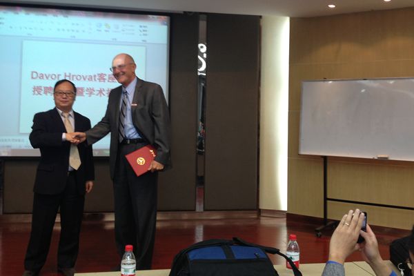 聘任仪式由韦巍主持。在简短的欢迎仪式后,宋永华向Davor Hrovat颁发了浙江大学客座教授的聘任证书,并为其佩戴浙江大学校徽。Hrovat对浙江大学近年来的发展和取得的成绩予以了充分的肯定,并对此次受聘作出了答谢,表示希望与浙江大学进行长期的合作。