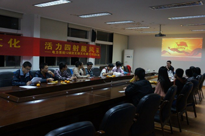 为加强团支部文化建设,电力系统12硕团支部经过了近两个星期的筹备,于2013年11月2日晚举行了主题为“轻舞飞扬秀文化,活力四射展风采”的文化创意比赛。