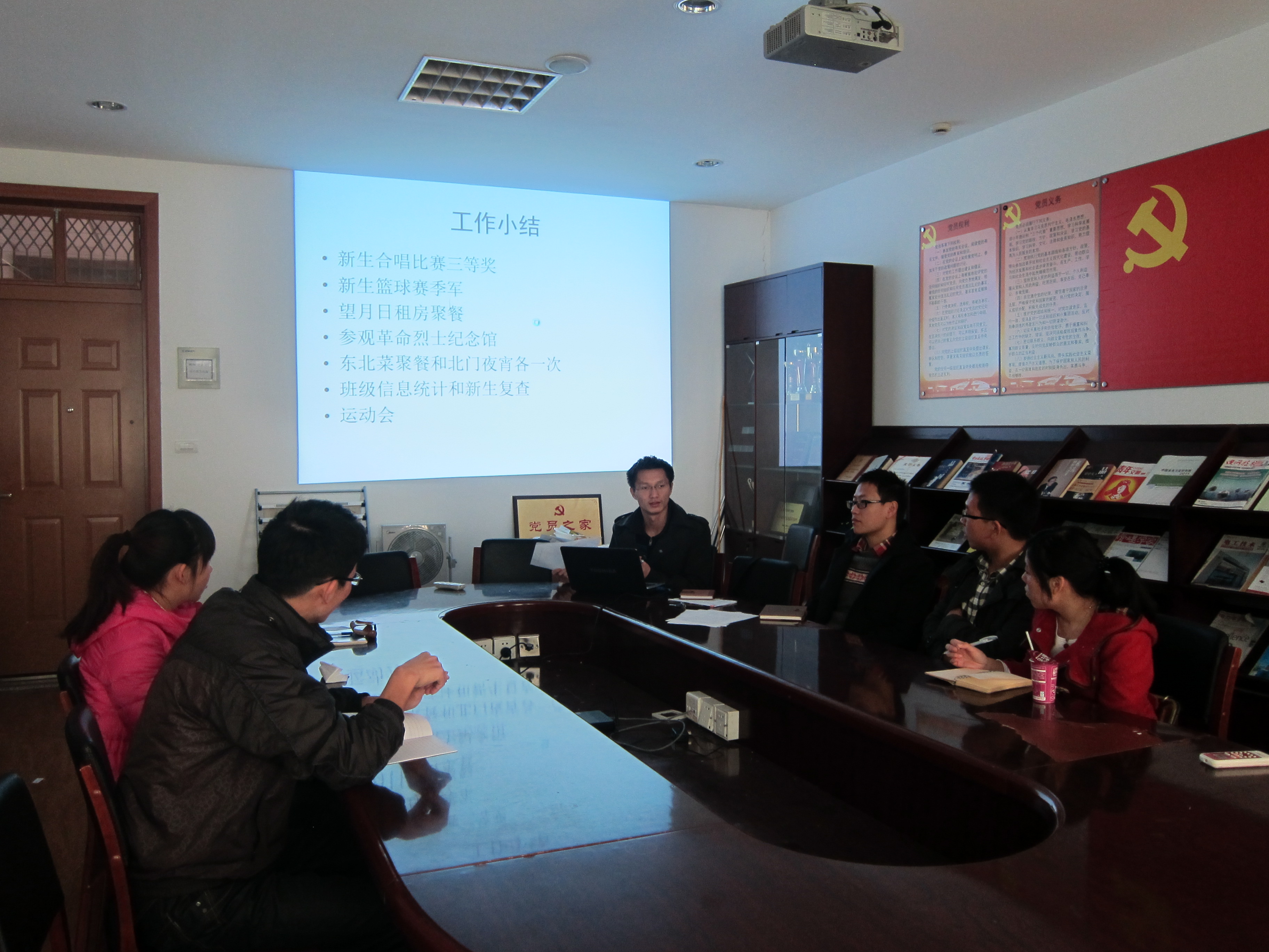 首先,秦东东就开学以来班级各项工作的完成情况进行了小结。系统所13级硕士班和自动化所13级硕士班联合组队获得了学院新生合唱比赛三等奖和新生篮球赛季军的集体荣誉,顺利完成新生始业教育。此外,班级组织大小聚会三次,参观革命烈士纪念馆一次,这些活动给同学们提供了一个相互认识和熟悉的机会,营造了良好地班级氛围,为日后开展其他形式多样的活动奠定了基础。