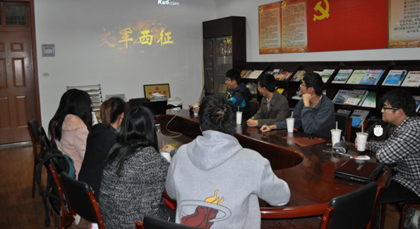 图:项目组成员认真观看文军西征视频