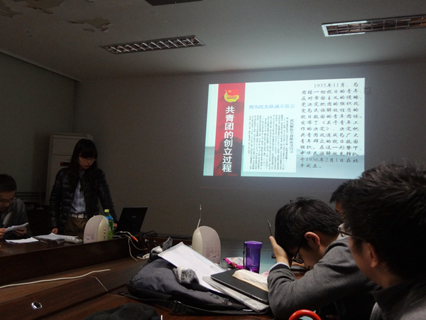 之后,同学们进行了讨论,各抒己见,发表了自己对共青团发展的感受,以及自己身为一名共青团员今后打算如何做。