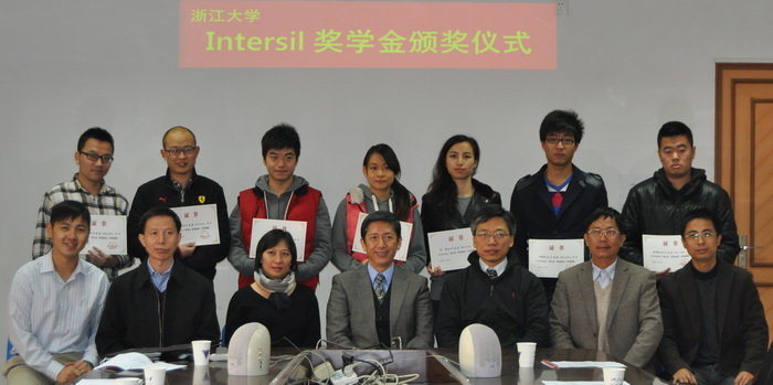马皓代表电气工程学院致辞。他对Intersil公司长期以来给予浙大电气工程学院的支持和关心表示感谢,向获奖学生表示祝贺。他希望同学们不懈拼搏、坚忍不拔,积极投身社会实践,以实际行动回报社会;同时也希望Intersil继续加强与电气工程学院校企双方的合作,为社会和企业发展做出更大贡献。 Intersil公司Clifton Ho代表设奖单位致辞。他感谢浙大电气工程学院为社会培养大量的优秀学生,他表示Intersil公司将一直既往的支持浙大学子完成学业,希望同学们继续保持创新精神,敢于发问,敢于好奇,积极投身智能电网、节能减排等重大课题,用创新的手段造福社会。 吕征宇宣读了获奖学生名单,本年度共有5位硕士生和2位博士生获此殊荣。出席颁奖典礼的双方代表共同为获奖学生颁奖。
