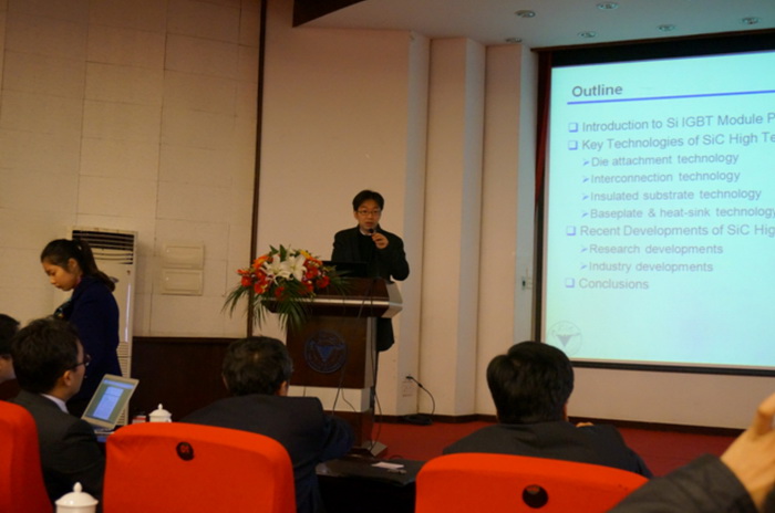 电气工程学院副院长何湘宁着重介绍了电气学院的近几年的发展概况。韩国Seung-Ki Sul 教授作了题为“无传感器转子位置检测”的学术报告。浙江大学盛况教授作了题为“碳化硅功率模块发展现状”的学术报告。会议进行过程中,韩国首尔大学Jung-Ik Ha教授、浙江大学陈国柱教授等分别作了学术报告。