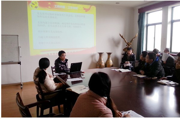在进行日常工作的安排通知后紧接着正式进入五好党支部的答辩环节。首先,各个参评支部结合工作实际,对照“五好”党支部的各项创建标准,围绕”领导班子、党员队伍、工作机制、工作业绩、群众反映”等五个方面,尤其对“五好”党支部创建过程中的特色和亮点做了全面而细致的汇报。电机与电器2012级硕士生党支部结合“班、团、党”,丰富会议内涵,提高工作效率;电力电子2012级硕士生党支部积极参与到志愿者活动中;自动化2012级硕士生党支部举办首届“双控杯”乒乓球比赛,将支部活动拓展到体育锻炼上,使同学们走出实验室,劳逸结合,更好地投入科研学习。各个参评支部也对未来的工作进行了展望,希望自己的支部能够建设成更加具有凝聚力的集体。