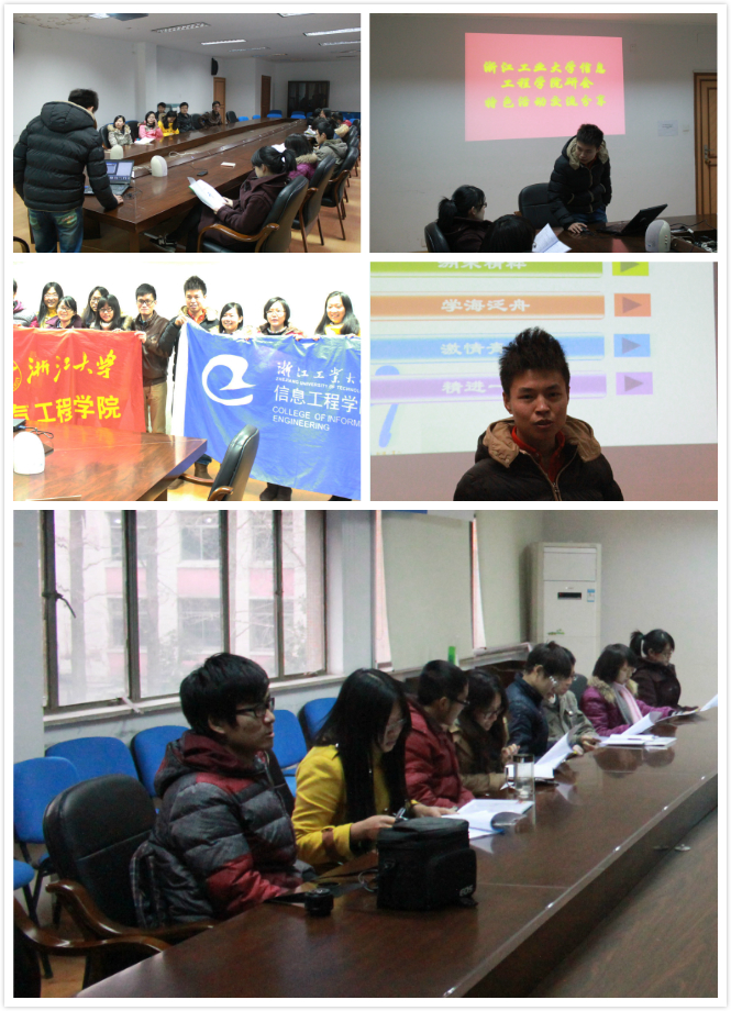 2013年12月26日,浙江工业大学信息工程学院研究生会的骨干成员来到浙江大学,与电气工程学院研究生会主要成员就学生组织的部门建设、活动组织、品牌推广等方面进行了交流与讨论。交流会于下午4点在电机工程楼201举行。电气工程学院研究生会主席赵融融及主席团成员、部长等参与了此次交流。