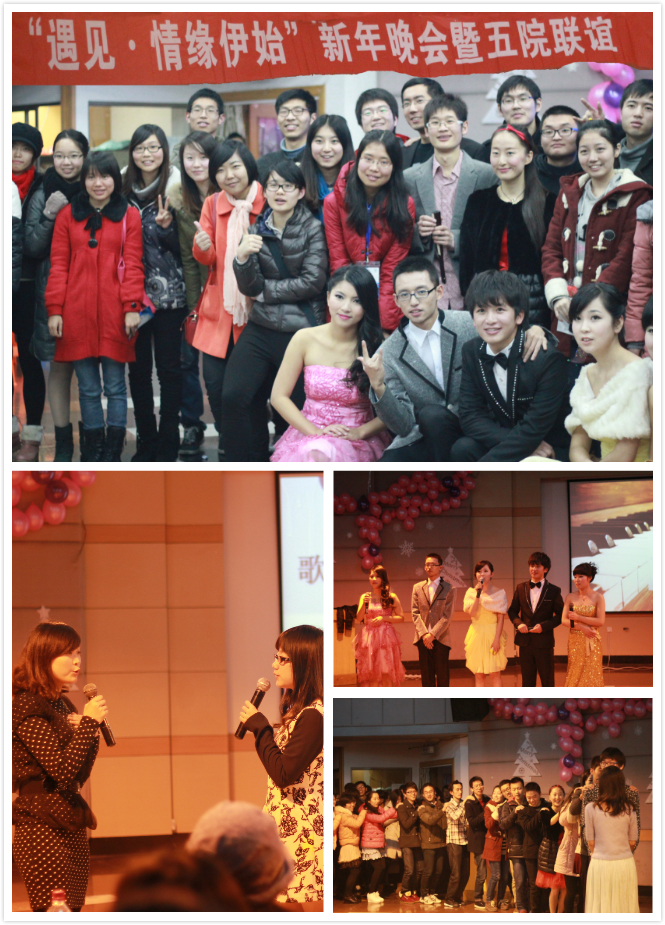 新年将至,浙大学子们的青春朝气又为初雪过后的料峭杭城增添了一份五光十色。2013年12月25日,在2014年脚步到来之际,由浙江大学研究生会、浙江大学博士生会、电气工程学院研究生会主办,控制科学与工程学系、经济学院、生物医学工程与仪器科学学院、传媒与国际文化学院联合协办的盛大联谊晚会在玉泉校区永谦活动中心三楼顺利举行。