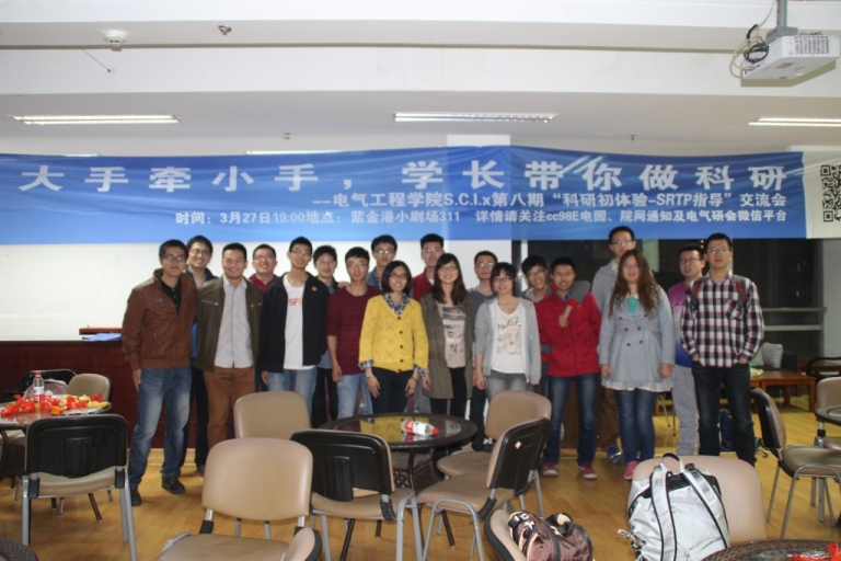 2014年3月27日晚7:00,电气工程学院S.C.I.x研究生发展论坛第八期之“科研初体验-SRTP指导”互动交流活动在紫金港校区小剧场活动室311顺利举行。活动邀请到了电气工程学院在SRTP科研训练项目上有丰富经验的暴英凯(电力系统及其自动化研一)、汪辉(控制理论与控制工程研一)、徐明辉(电力电子与电力传动大四)三位嘉宾。他们在两个小时的活动中热情洋溢的为参加STRP科研项目的本科同学们分享了他们过往项目中的经验与感悟,同时就同学们所关心的学习,科研,研究生生活等方面的问题进行了深入交流。