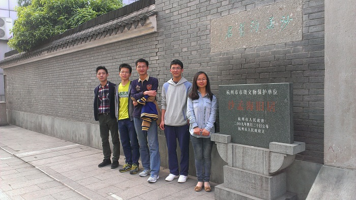 首先,大家来到了位于西子湖畔的沙孟海旧居。沙孟海先生是二十世纪书坛泰斗,在语言文字、文史、考古、书法、篆刻等方面均深有研究,曾任浙江大学中文系教授、浙江美术学院教授、西泠印社社长、西泠书画院院长、浙江省博物馆名誉馆长、中国书法家协会副主席。在书法上,沙孟海先生受吴昌硕影响,开一代雄强风气,被誉为“真力弥满,吐气如虹,海内榜书,沙翁第一”。尽管同学们对书法所知甚少,但在西湖风景区里,在历史和标志建筑中,经常看到书法家沙孟海题写的匾额和楹联,字体雄浑刚健,气势磅礴。