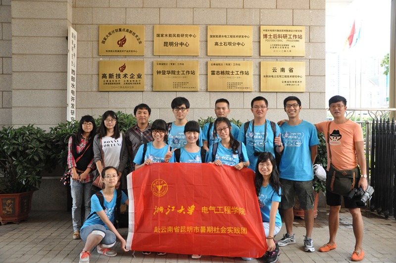 2014年8月7日,经历了三十多个小时的火车旅途,浙江大学电气工程学院触“dian”者暑期社会实践团队走进了彩云之国——云南。清晨的昆明,凉风习习,云清日明,实践团队的成员们激情洋溢,朝气蓬勃地奔赴此次社会实践活动的第一站——中国水电顾问集团昆明勘测设计研究院。