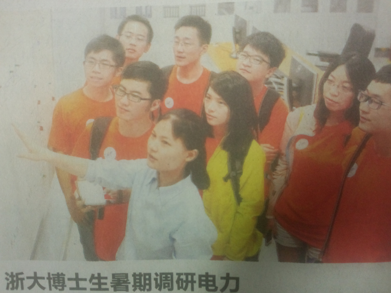 海波涟涟、海风习习,八月的舟山群岛凉爽宜人、游客涌动。满怀着对“千岛之城”舟山的美好向往和对祖国海洋电力事业的孜孜追求,浙江大学电气学院10位博士生组成暑期实践团队,赴舟山开始了为期一周的“海洋电力发展”主题交流与调研活动,以感受海洋经济新发展,讨论海岛电网与海洋输电新技术,体验智能电网新动态等内容。此次活动引起广泛关注,已分别被新华网、《浙江日报》、大学生在线网及《舟山晚报》报道。