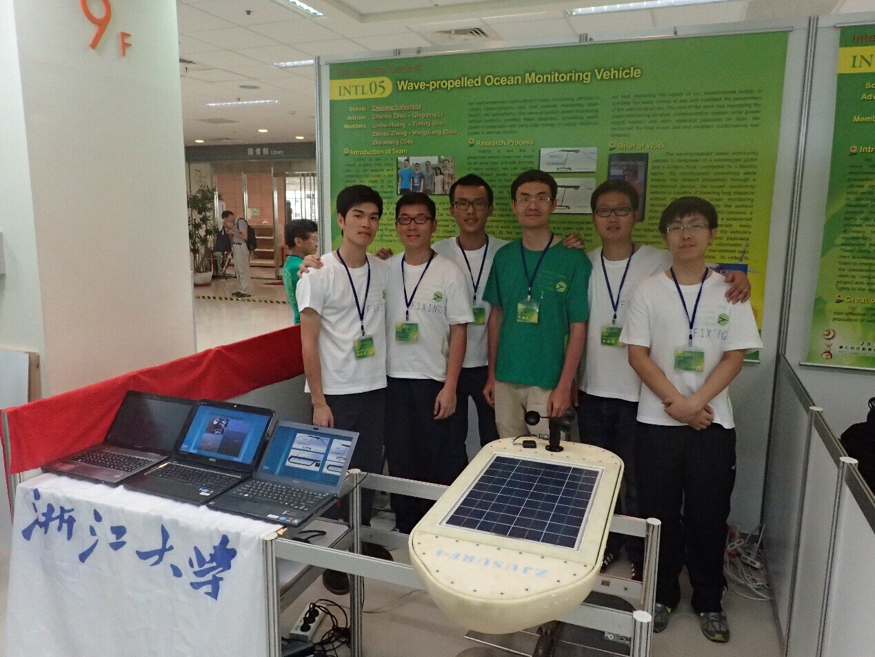 2014年8月26日—8月30日,由浙江大学电气工程学院本科生黄林彬、沈燚明、郑志豪,控制科学与工程学系研究生周宏祥,机械工程学系本科生陈朝萌组成的团队代表浙江大学应邀赴台湾参加2014“东元科技创意竞赛”(指导、带队老师:控制系周春琳老师、李青青老师),其团队作品《Wave-propelled Ocean Monitoring Vehicle》从19件决赛作品中脱颖而出,捧回大赛冠军奖杯并获得1.2万美元奖金。
