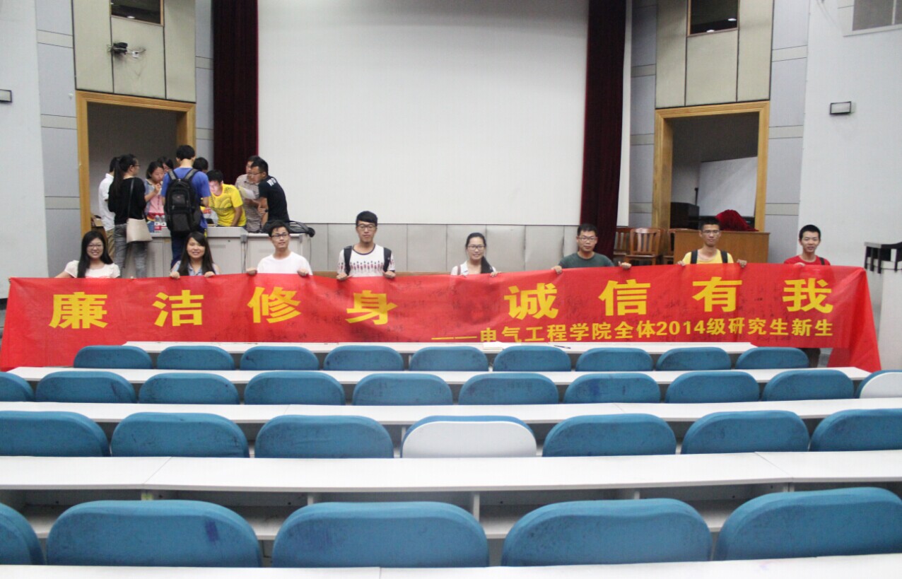 为进一步推进廉洁教育,加强廉政文化建设,构建大学生廉洁修身教育体系, 9月25日17:30,电气工程学院以研究生新生始业教育为契机,在玉泉校区教七影视厅展开了以“廉洁修身,诚信有我”为主题的廉洁教育活动。