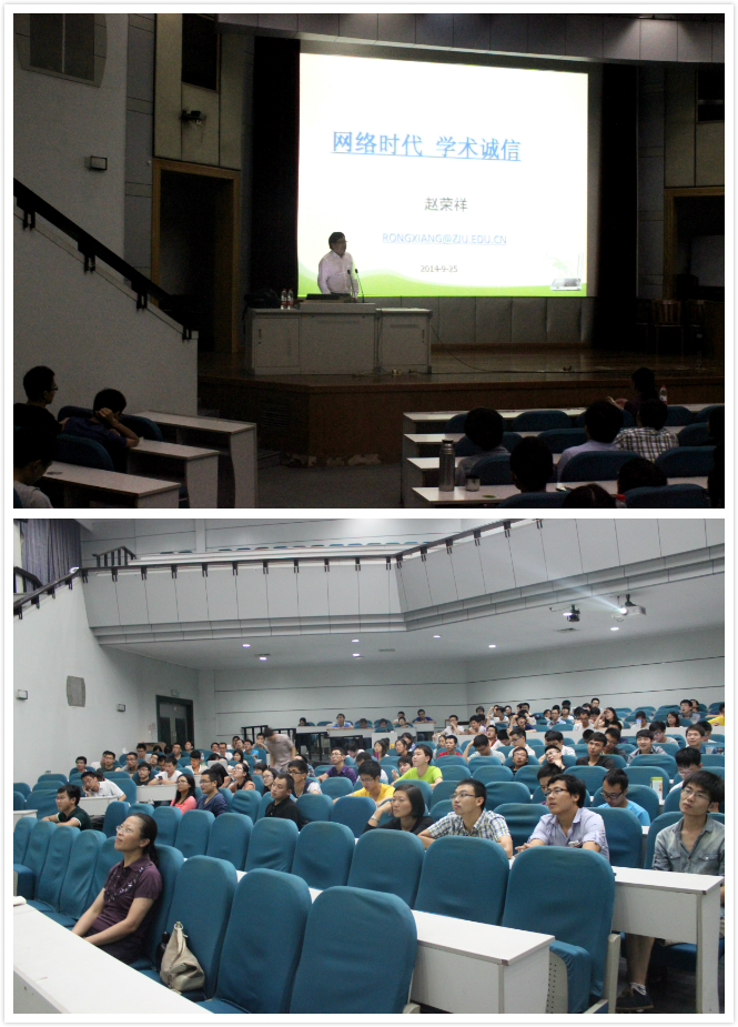 学院特别邀请浙江大学工业技术研究院院长、电机学科教授赵荣祥为全体研究生新生作了主题为”网络时代,学术诚信”的精彩报告。他结合实例详细阐述了“造假”、“剽窃”、“一稿多投”等学术不端现象及其危害,告诫广大研究生新生诚信科研,杜绝造假。同时,赵老师结合自身经历讲解了科学与技术创新的内涵,并鼓励同学们做诚信的创新型人才。赵老师还语重心长地向大家强调,尤其是在新时期,网络信息技术十分发达,我们不论是在学术上还是为人上都应当廉洁修身,诚信为本,进而成为我们国家未来社会发展的中坚力量。