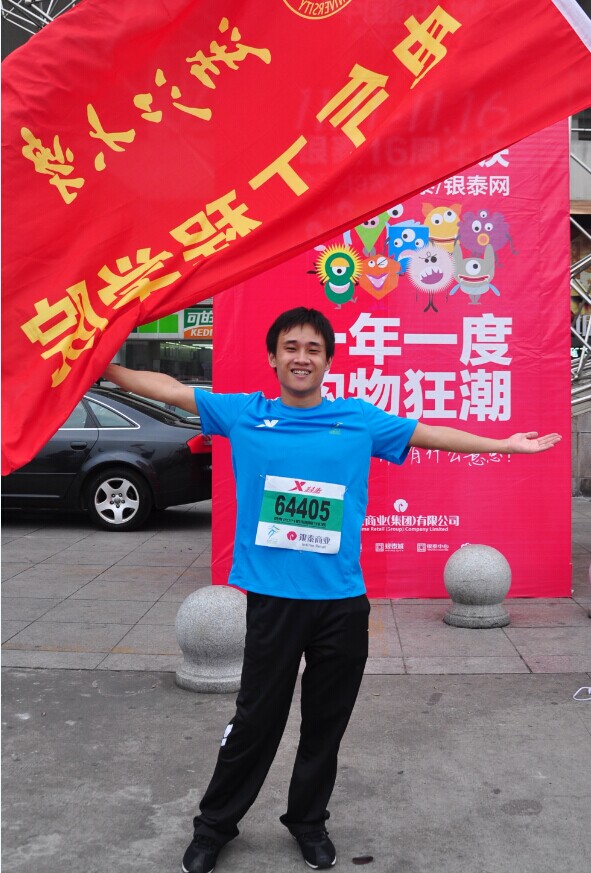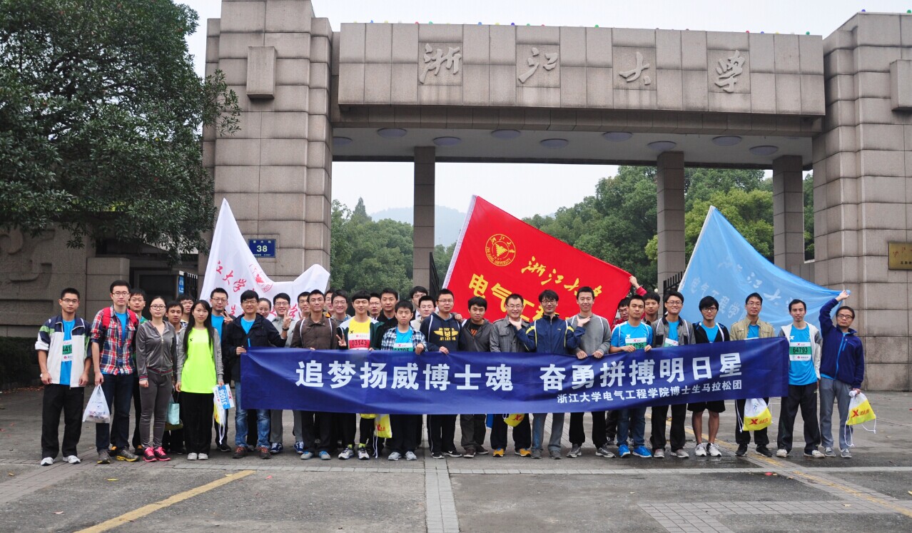 11月2日清晨6:30,空气清新,温度适宜,电气学院的的研究生们准时在浙江大学正门集中。他们个个精神饱满,活力四射,斗志昂扬,在“浙江大学电气工程学院”、“浙江大学电气工程学院博士生会”和“浙江大学电气工程学院博士生马拉松团”三面醒目旗帜的引领下,健儿们并肩携手走向马拉松赛的起点,迎接新一轮的挑战。