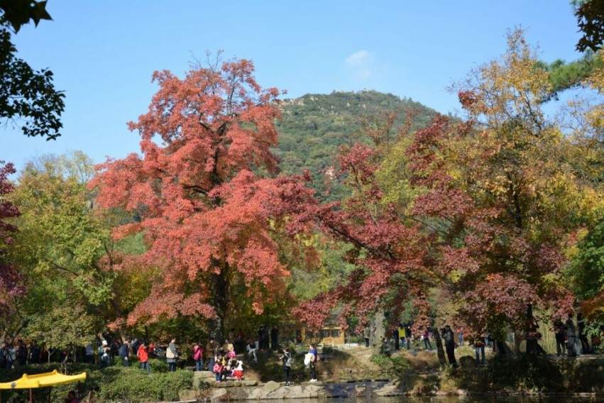 第二天早上8点,大家搭上旅游大巴来到了著名的苏州天平山景区欣赏秋天红叶。天平山山势峭峻奇险,系北宋名臣范仲淹先祖归葬之地,景区内有范仲淹纪念馆详述这座山的久远历史。据导游介绍,天平山的红枫中年代最久远的有着400多年的历史,是由范仲淹的后人种植于此。现在,当初的300株尚存176株,天平山也成了远近闻名的赏枫胜地。每年11月天平山游人如织,已成了另外一道风景。我们在深秋时节来这里赏游确是十分应景!
