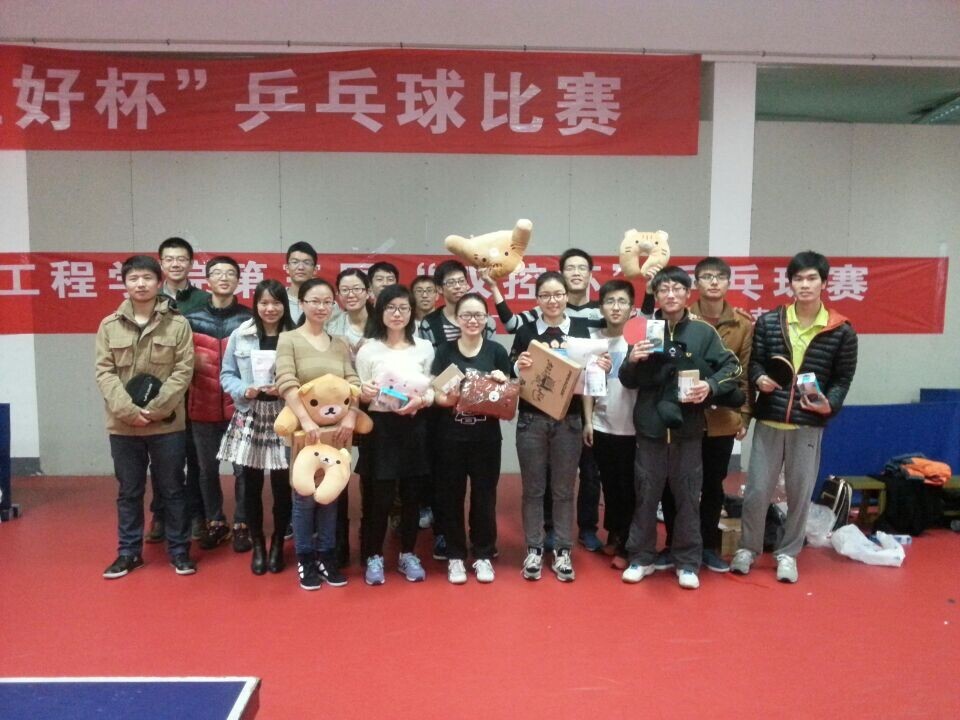 为了提高同学们加强体育锻炼的意识,增强同学们用于拼搏的意志,并丰富同学们的课余生活。2014年11月29日,自动化13硕党支部组织了电气工程学院第三届“双控杯”乒乓球赛。