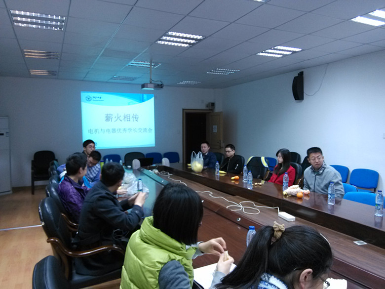 为了让研究生一年级的学弟学妹们了解本专业的就业方向、就业形势,尽早做好未来职业规划,在研究生期间有针对性的培养自己的能力,增强就业竞争力,受电机2014级硕士班学弟学妹的邀请,11月30日上午,电机与电器2012级与2014级硕士班在电机楼201室举行学长经验交流会。会上,电机2012级硕士班申晓峰、张耀中、芦思晨、易曦露四位同学与电机2014级硕士班全体同学就电机专业的学习科研及就业问题进行了经验交流。