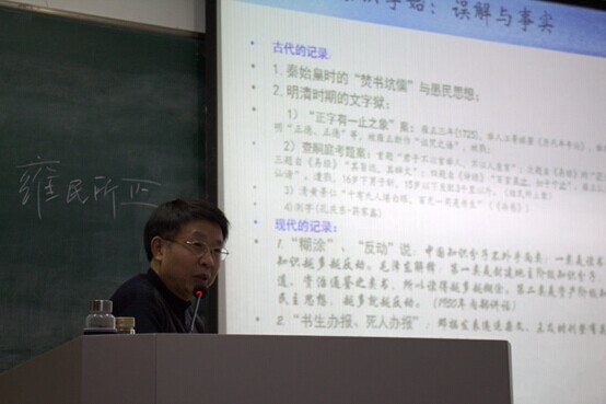 古往今来,太多家喻户晓的冤假错案都引自识字之士。在这里,池昌海教授带着同学们串联起了那些因为“会识字”而引发的历史悲剧:秦始皇时期的焚书坑儒政策和愚民思想、明清时期盛行的“文字狱”等。进入现代以来,类似的记录也层出不穷,最让人印象深刻的不外乎是文革期间,对于知识的绝对否定。这种偏激的观点遗留到了现在,以至于某些时候人们保留着“书呆子”、“秀才造反十年难成”的偏见。
