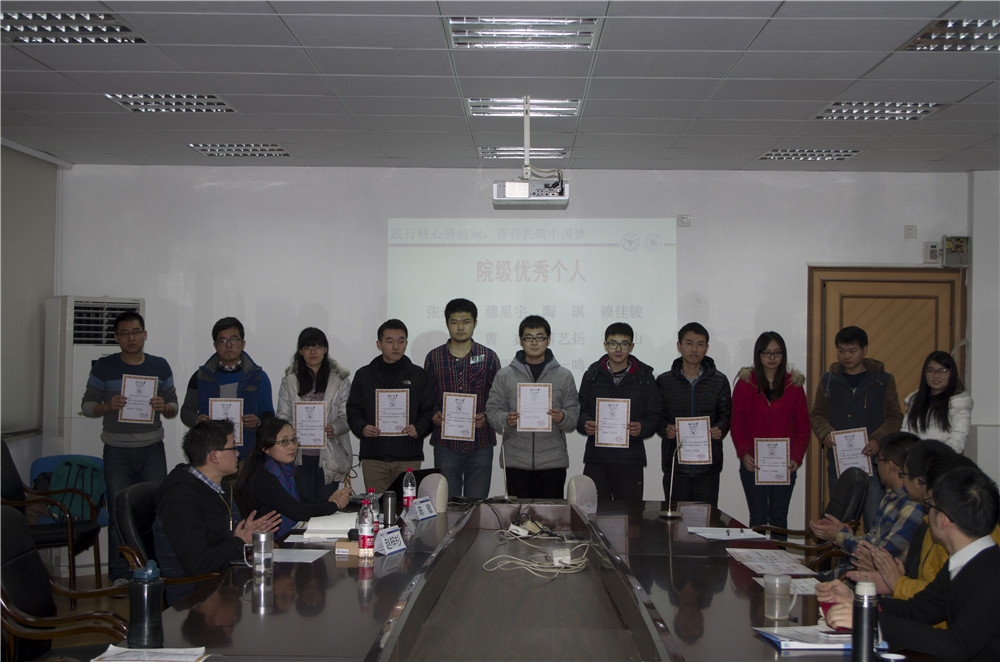 在热情的音乐中,大会进入到颁奖环节,本次大会先后对获得校级优秀团队、院级优秀团队、校级优秀论文、院级优秀论文、校级先进个人和院级先进个人荣誉的团队和个人进行表彰,由陈敏老师、李涛老师和赵梓杉老师分别为获奖人员颁奖,并合影留念。