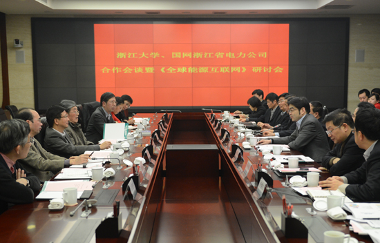 2月9日下午,在韩祯祥院士和邹晓东常务副书记的带领下,浙江大学电气工程学院党政领导和相关学科负责人一行八人专程拜访了国家电网浙江省电力公司。浙江大学、国家电网浙江省电力公司合作会谈暨《全球能源互联网》研讨会在此举行。浙江省电力公司总经理张磊、副总经理商全鸿、阙波等公司领导和部门负责人参与了会谈。双方就进一步完善战略合作机制、加强科技攻关及人才培养等合作进行座谈交流,对全球能源互联网概念的提出与实施进行研讨。浙江省电力公司副总经理商全鸿主持会议。