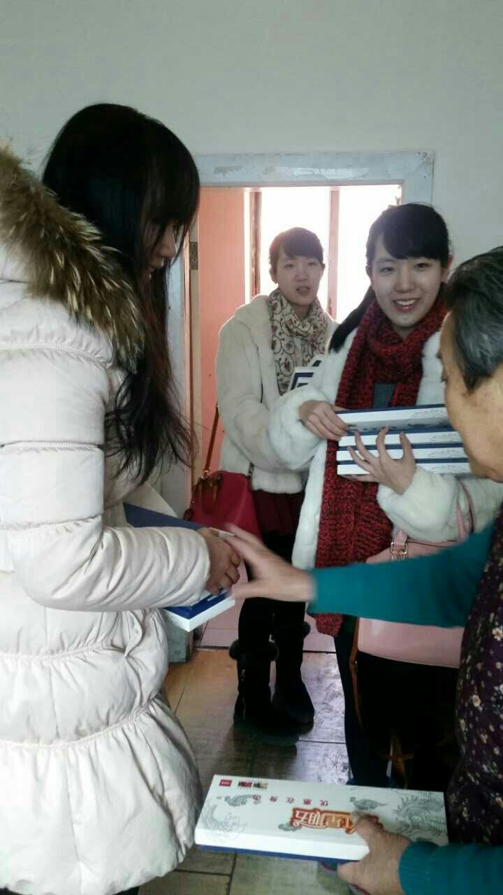 长春市同心养老院共有九十余位老人,年龄分布在六十至一百岁间,其中有些老人身体还算硬朗,但也不乏部分老人生活完全不能自理,卧病在床。了解了这些基本情况后,队员们在2月10日前往长春同心养老院前尽己之力买了一些保暖用品,初见时便一个一个亲手将礼物送给老人们,与他们嘘寒问暖。在团队成员眼中本是微不足道的行为,却有许多老人拉住我们的手,在狭小的房间中找出一把椅子执意留我们暖和一会再走,另我们十分感动。看着他们的笑脸,成员们都露出会心的微笑。2月11日是北方的小年,应养老院工作人员的邀请我们再次来到养老院与老人们同庆小年。为了让老人们的小年过得热热闹闹,队员们还准备了一些文艺节目,比如学折纸、魔术等,和老人们一起演节目、聊天,一向冷清的养老院此刻充满了欢声笑语。对许多老人来说养老院就是他们的家,而我们这些与他们一同过节的晚辈就是家人一样。在一片祥和的气氛中,队员们和老人一起欢快地度过了这个难忘的节日。2月15日,临近年关,因同心敬老院的部分工作人员离开人手不够,于是大家第三次自愿前往同心敬老院担任临时工作人员的职务,搀扶行动不便的老人活动并做一些清洁工作。虽然大家在家时不常做这些工作,但真正做起来绝不懈怠,辛苦的工作换来了老人们的赞许和院方的感谢。至此,慰问同心敬老院的社会实践活动告一段落。忘不了初到时老人们拉住我们嘘寒问暖,忘不了表演时老人们溢于言表的幸福感,忘不了离开时老人们隔着窗户挥手告别。短短几天的接触已经让我们产生了深厚的情谊,也将这些老人看做自己的爷爷奶奶一样,日后我们必定会常回来看看这些老人。